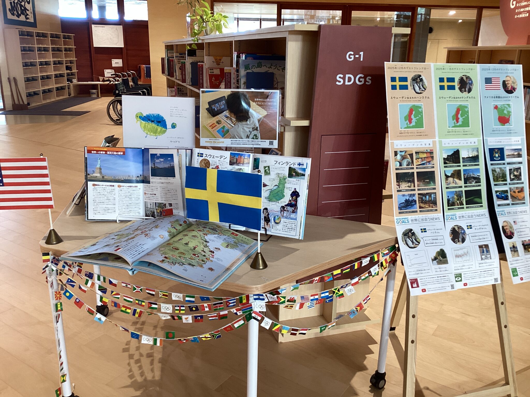 We introduced books related to the United States and Sweden.