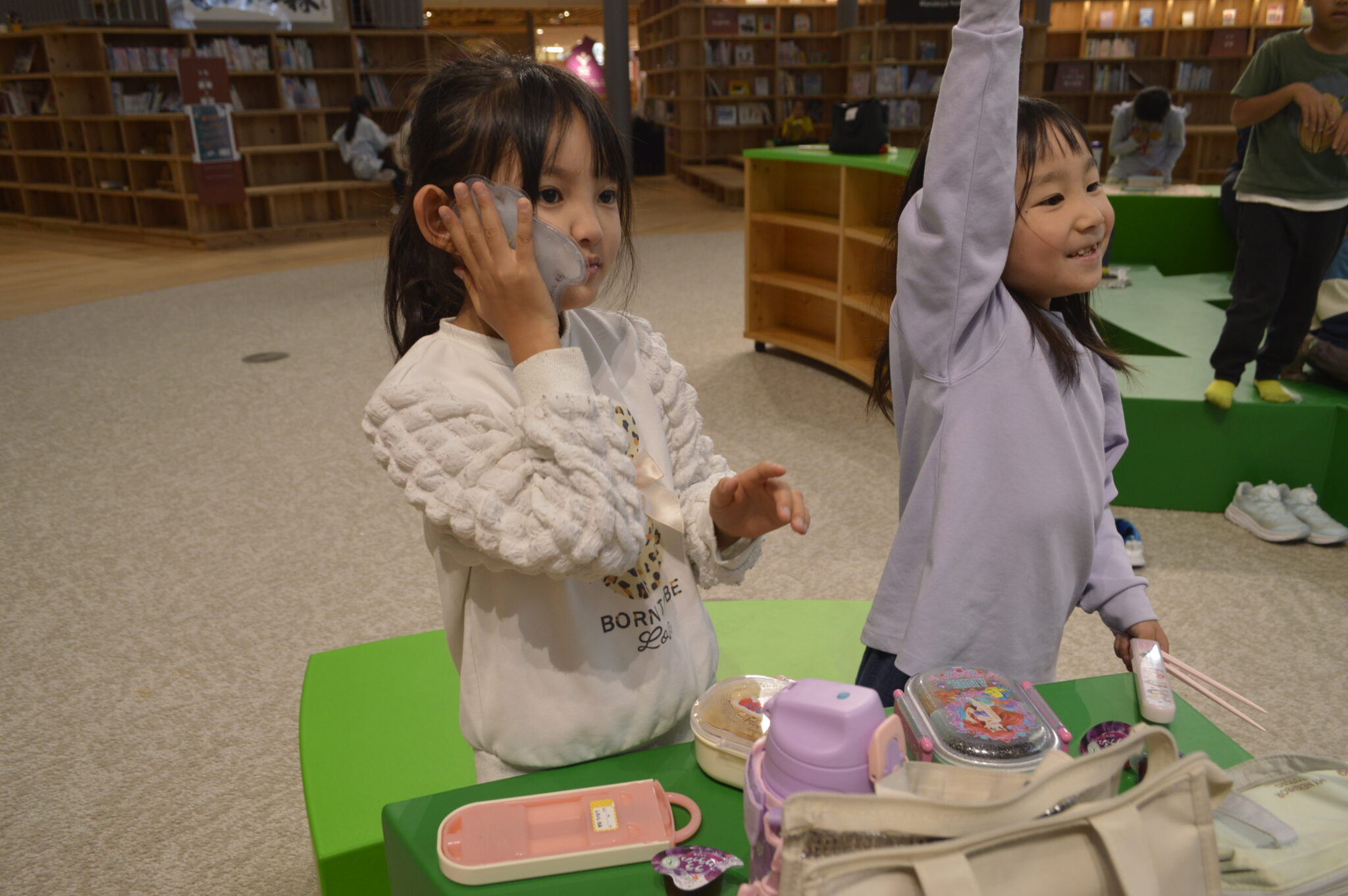 お昼休みはうきうきウォッチング♪お久しぶりのランチいいともの時間がやってきました。お弁当の日だったので、本の広場を中心に集まってもらいました。今回は大熊町出身のなんちゃんが来てくれました。町内でイベントの企画や準備を担当している他、移住者への支援を行っています。イラストを描くことが得意で、ゆめの森ウェディングが開催された際にはパンフレットのイラストを描いていました。
