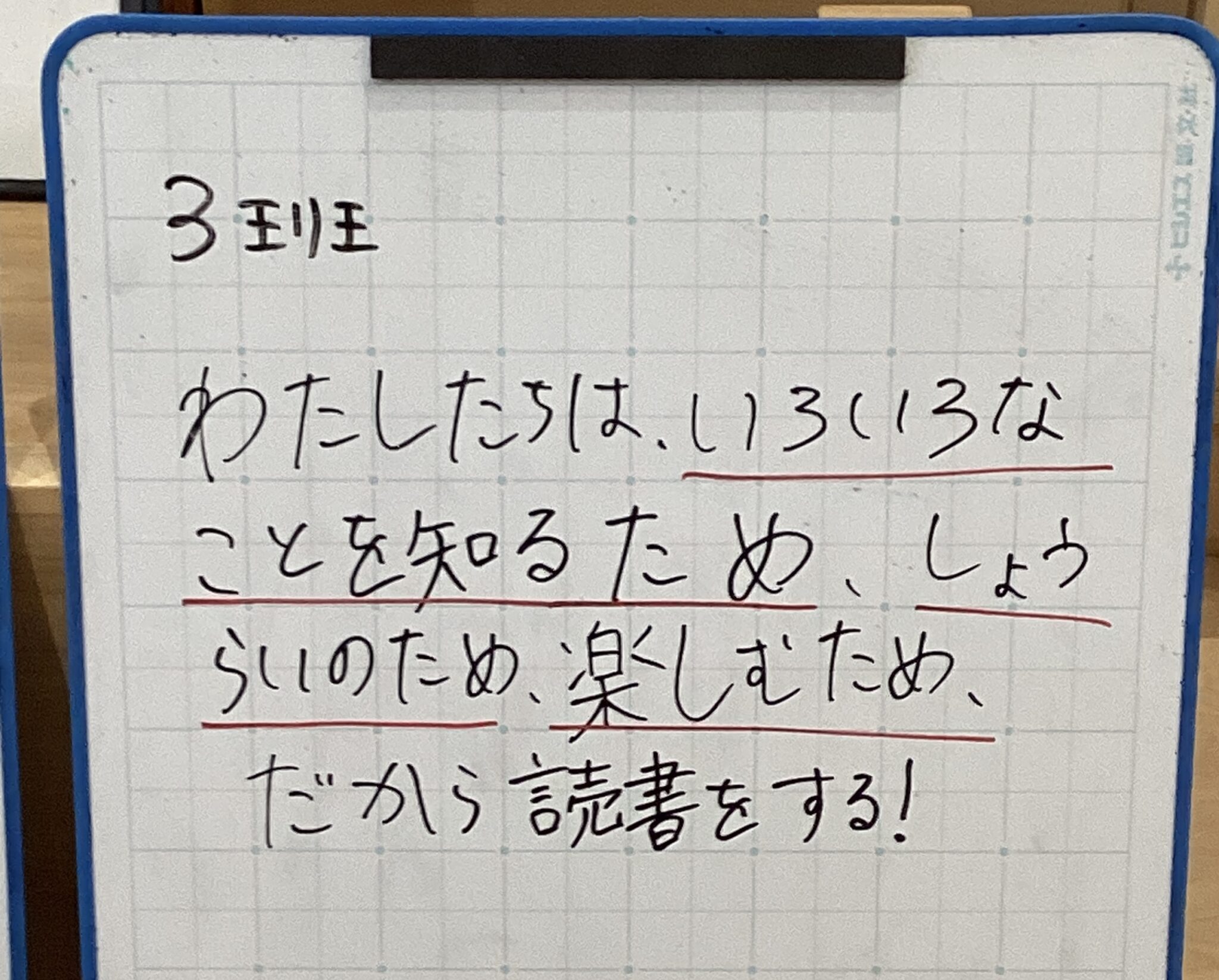 子供たちも自分なりの答えをもちながら読書をしています。長い人生の中で「本を読む」という選択肢を有効活用してほしいと思います。