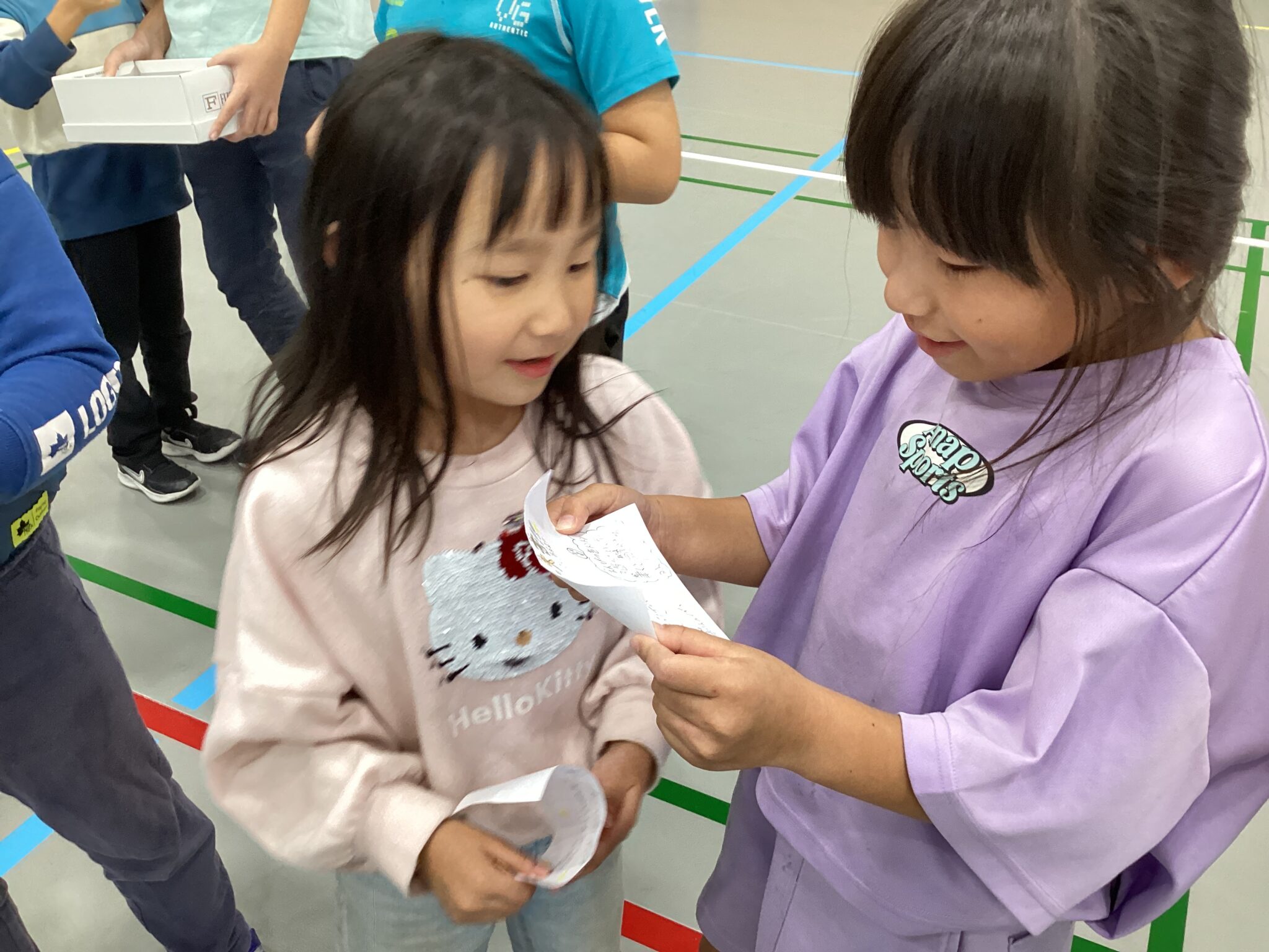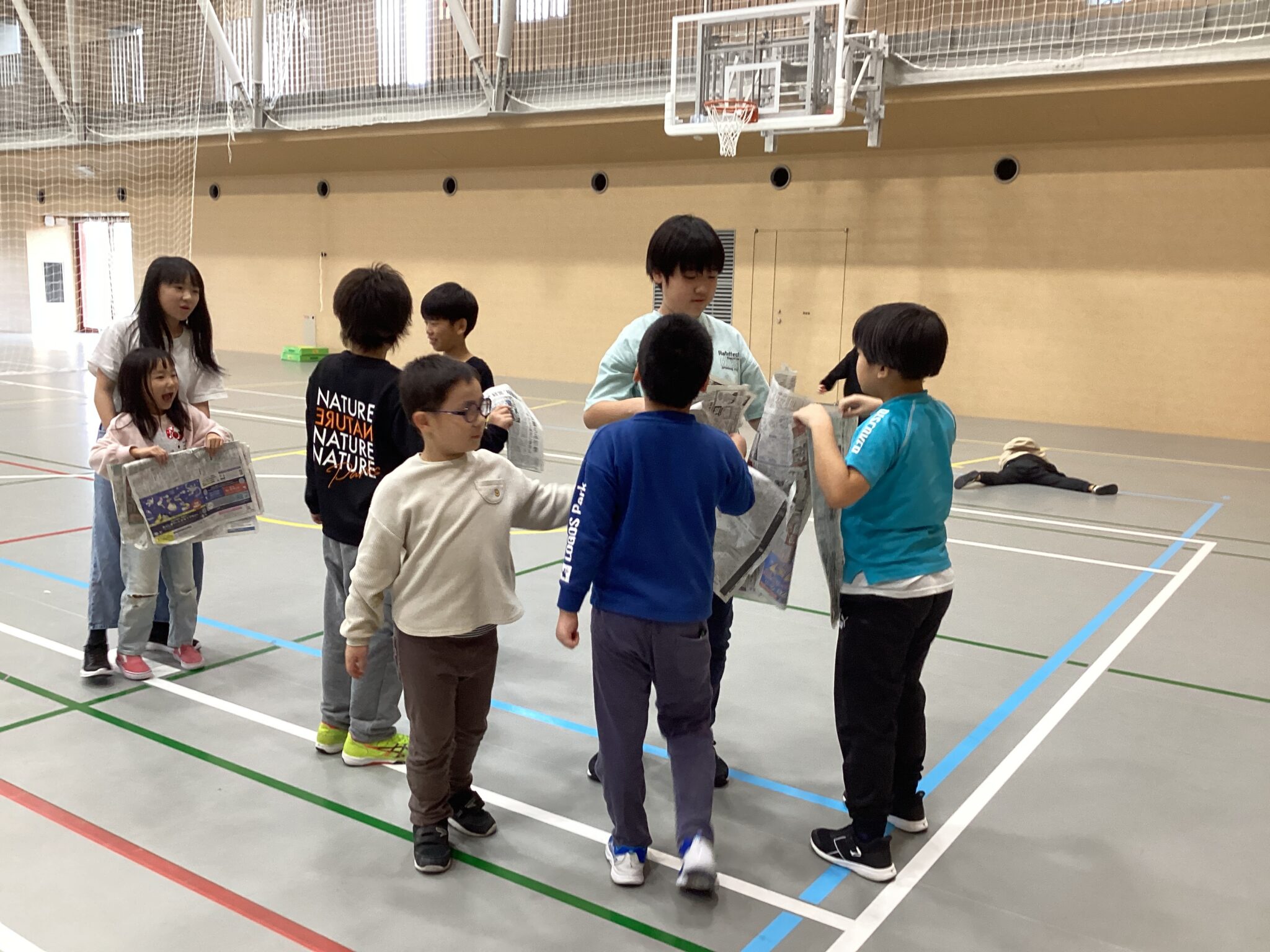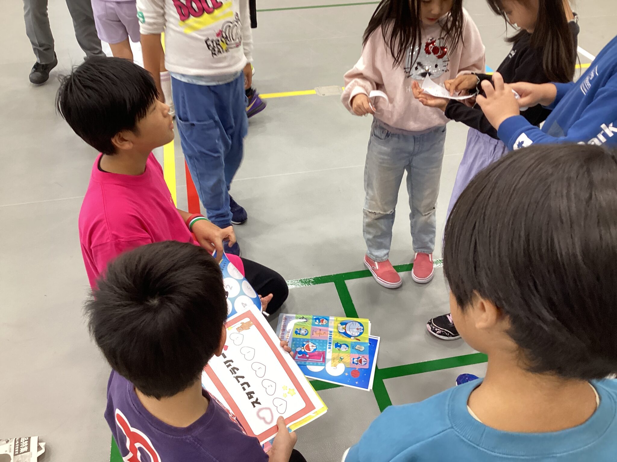 1〜6年生の子どもが全員で遊べる遊びを考え、新聞紙を使った“なんでもバスケット”は大盛り上がり!遊びの時間の後は手作りの“おみくじ”を引いてもらったり、スタンプラリーを実施したり、楽しめるように工夫されていました。「ありがとう!」「おみくじ、すごい!」と、良い反応がもらえたことに6年生たちも一安心な様子。