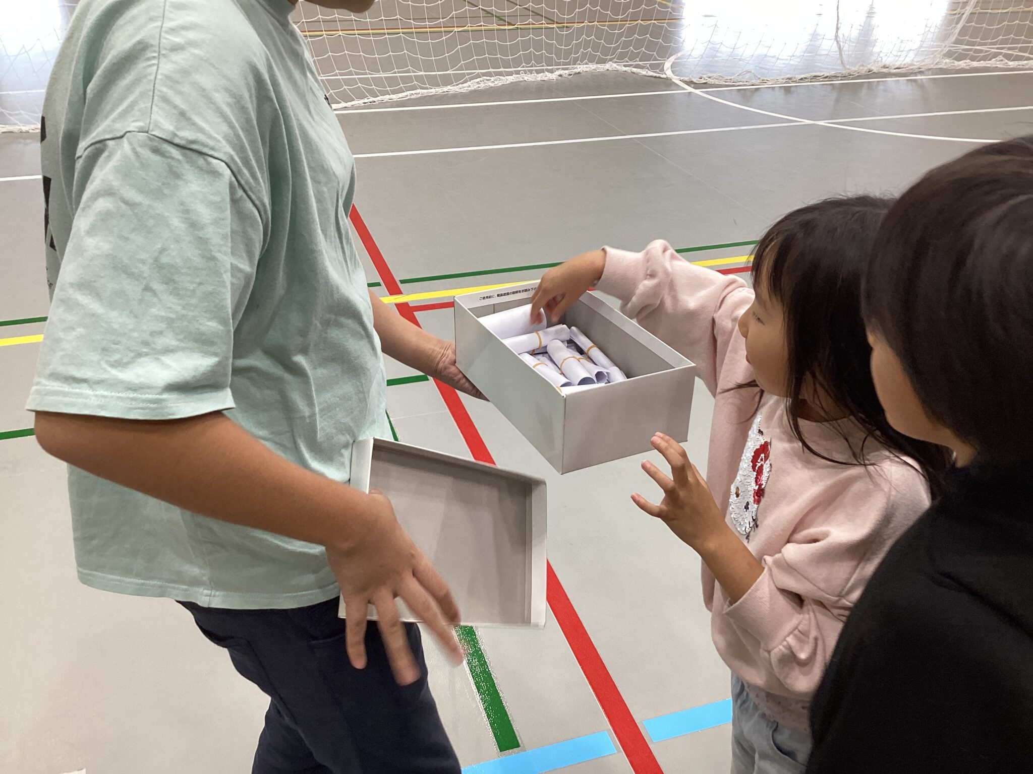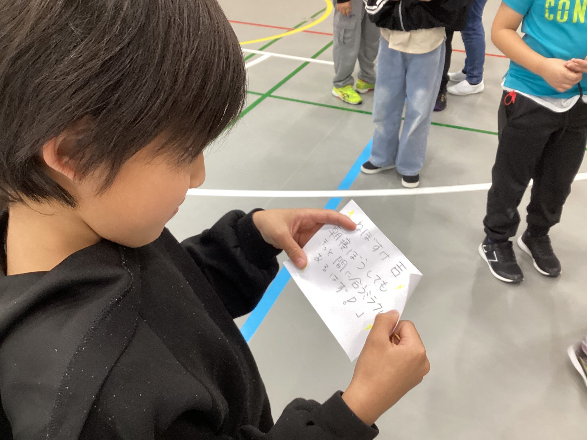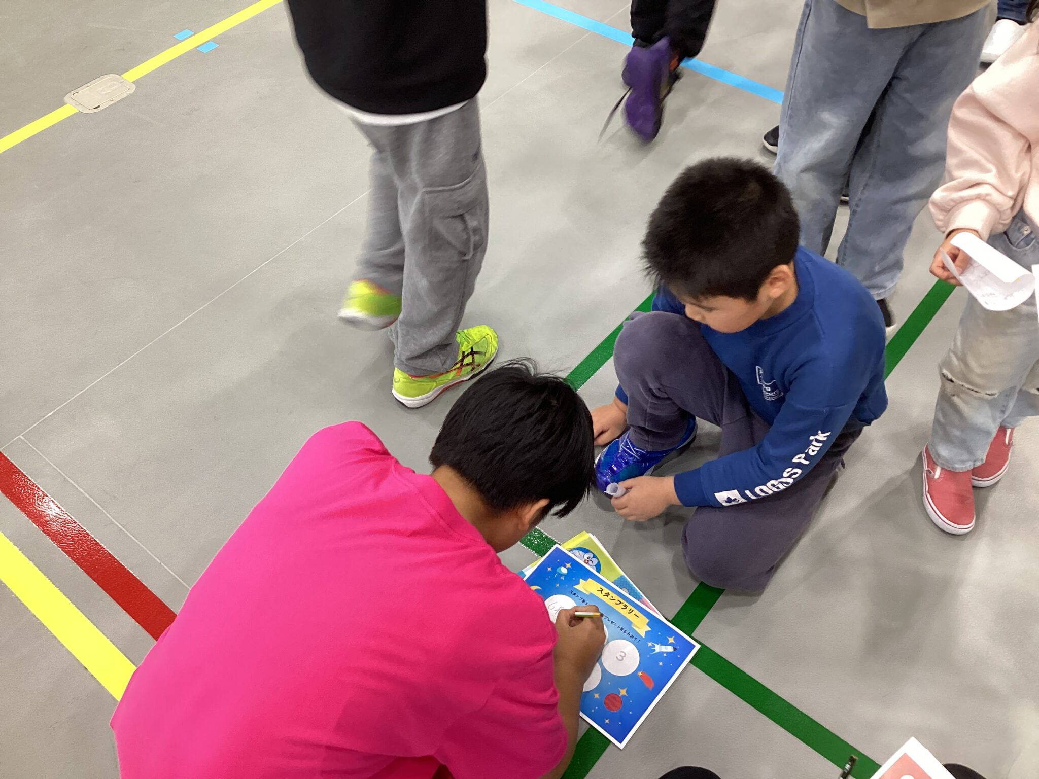 1〜6年生の子どもが全員で遊べる遊びを考え、新聞紙を使った“なんでもバスケット”は大盛り上がり!遊びの時間の後は手作りの“おみくじ”を引いてもらったり、スタンプラリーを実施したり、楽しめるように工夫されていました。「ありがとう!」「おみくじ、すごい!」と、良い反応がもらえたことに6年生たちも一安心な様子。
