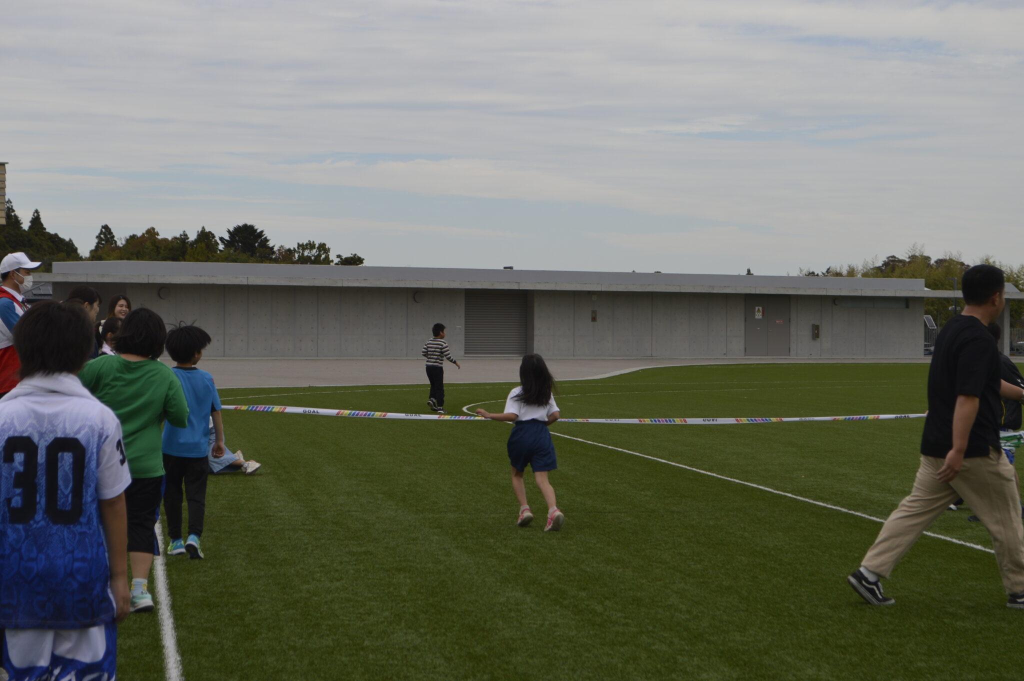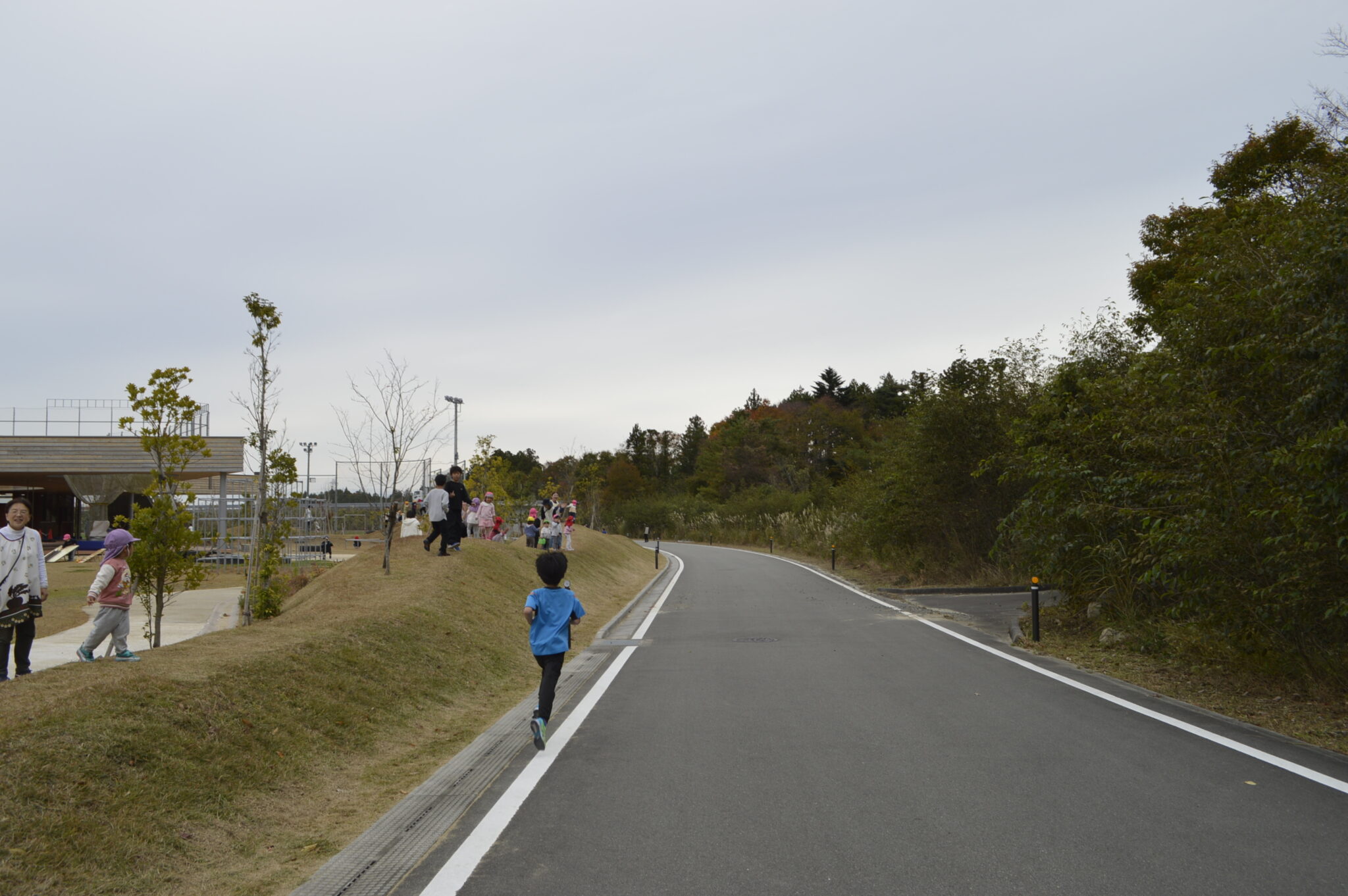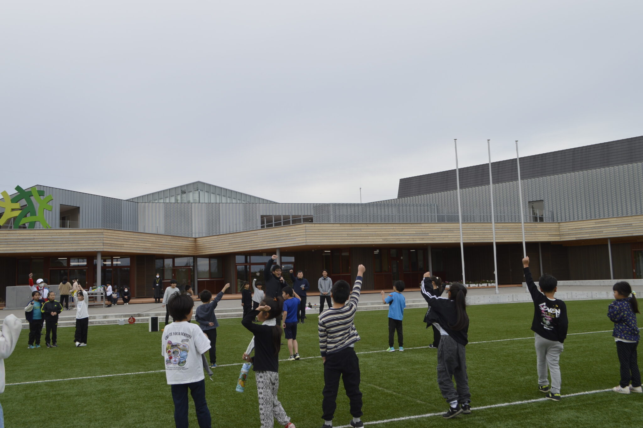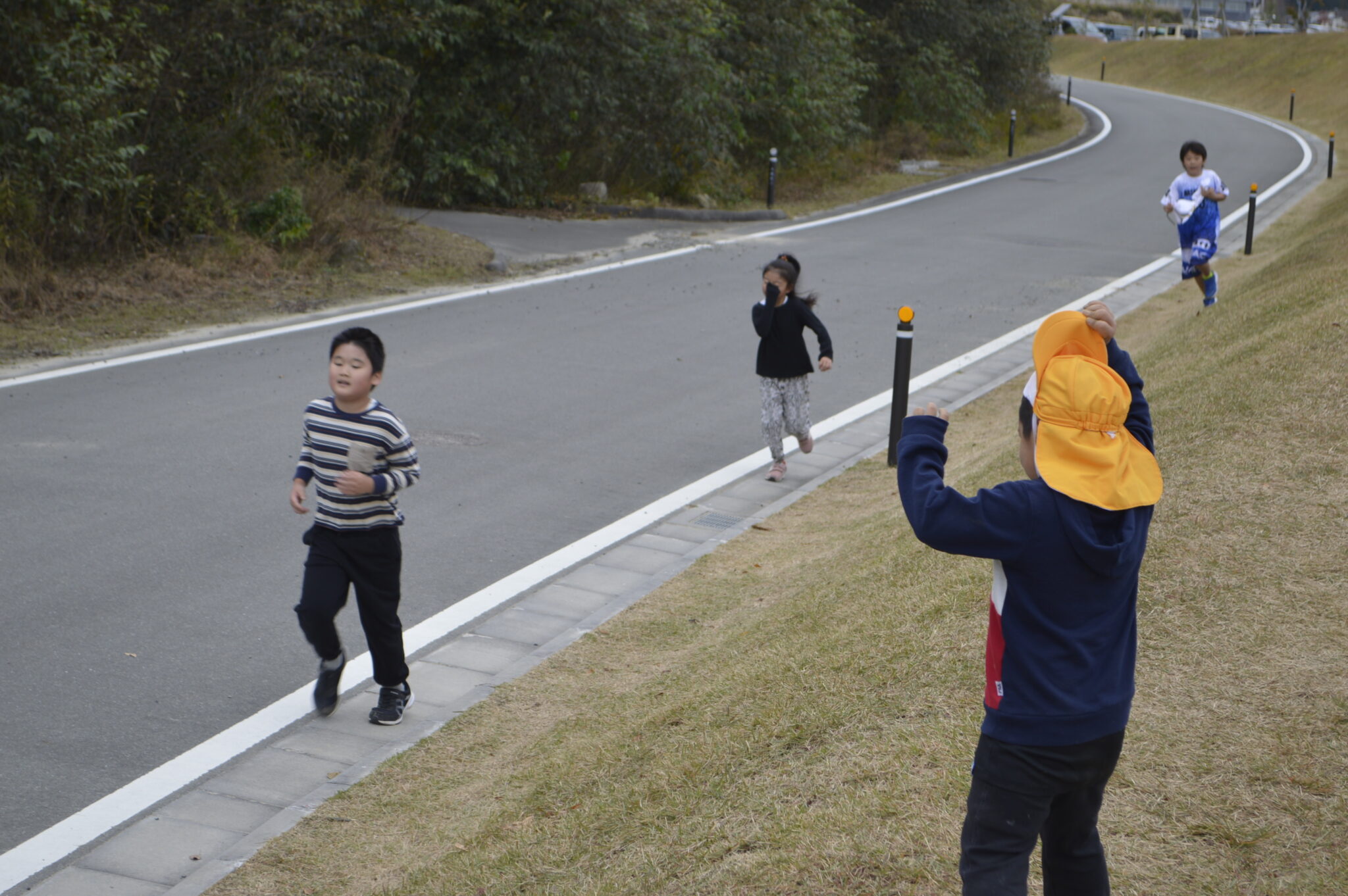 園庭からはこども園の子供たちの応援の声が聞こえてきます。「ガンバレ~!」