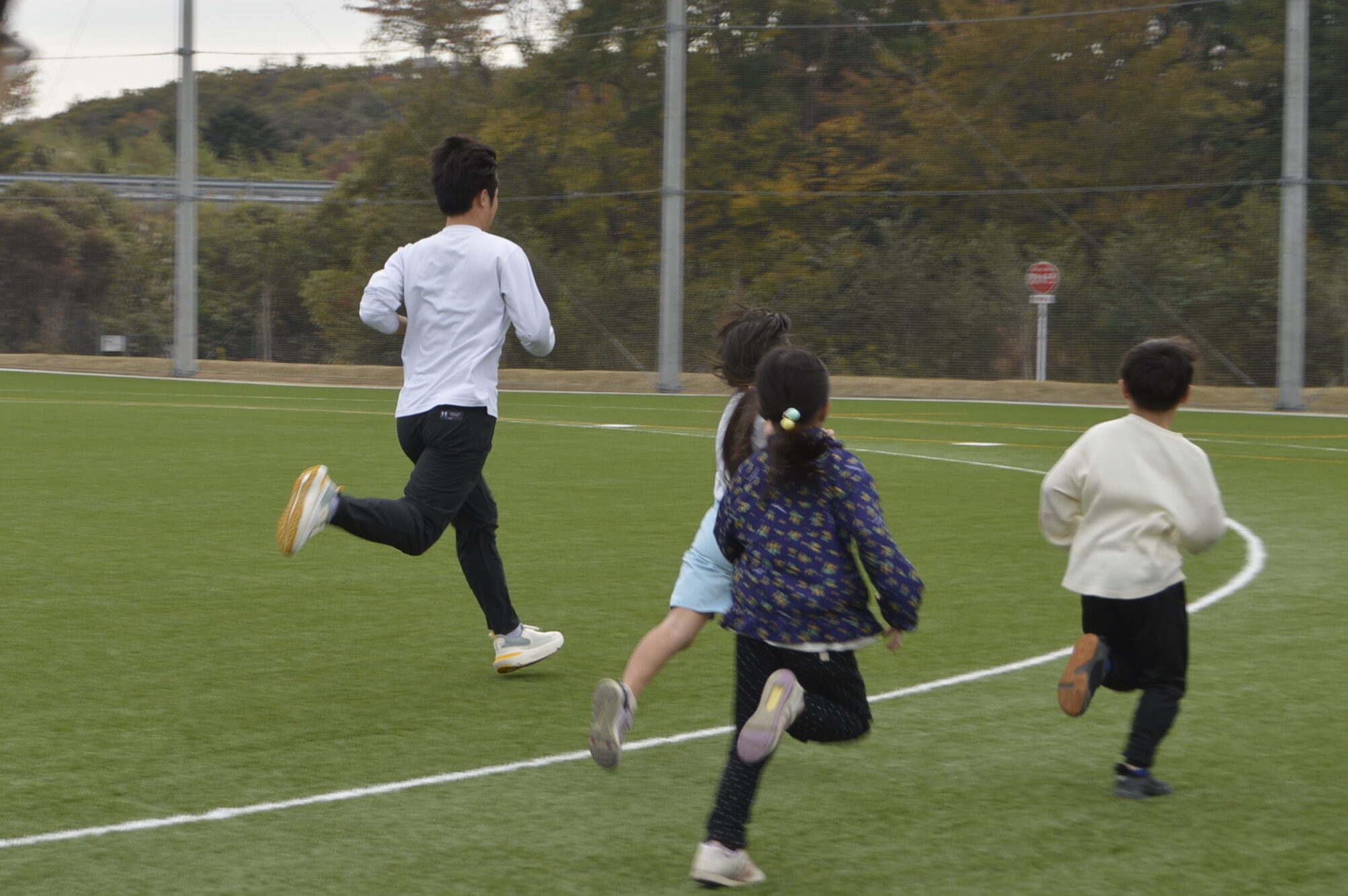 秋と言えば“運動”!前期課程の子どもたちは持久走記録会に向けて、練習に励んでいました。風の強い日もありましたが、記録会当日は風も弱く、持久走日和!1~3年生の開会式ではGMより「一生懸命、練習するとできるようになります。高く跳ぶためには練習が必要。ちょっとずつ自分の限界に挑戦してください。持久走はツラいなと思うときがくるかもしれません。自分が成長するチャンスです。完走を目指して頑張って!」と挨拶がありました。