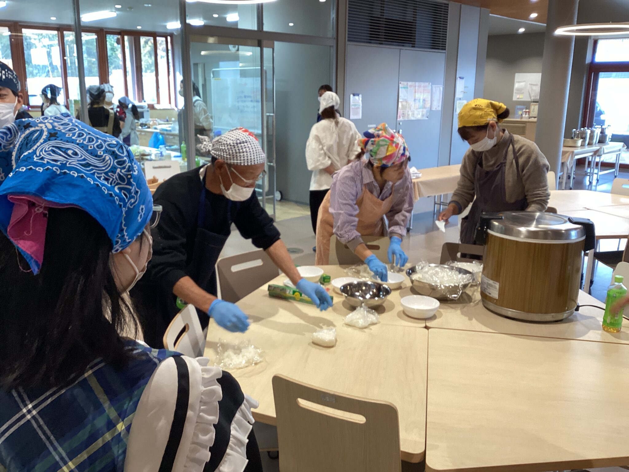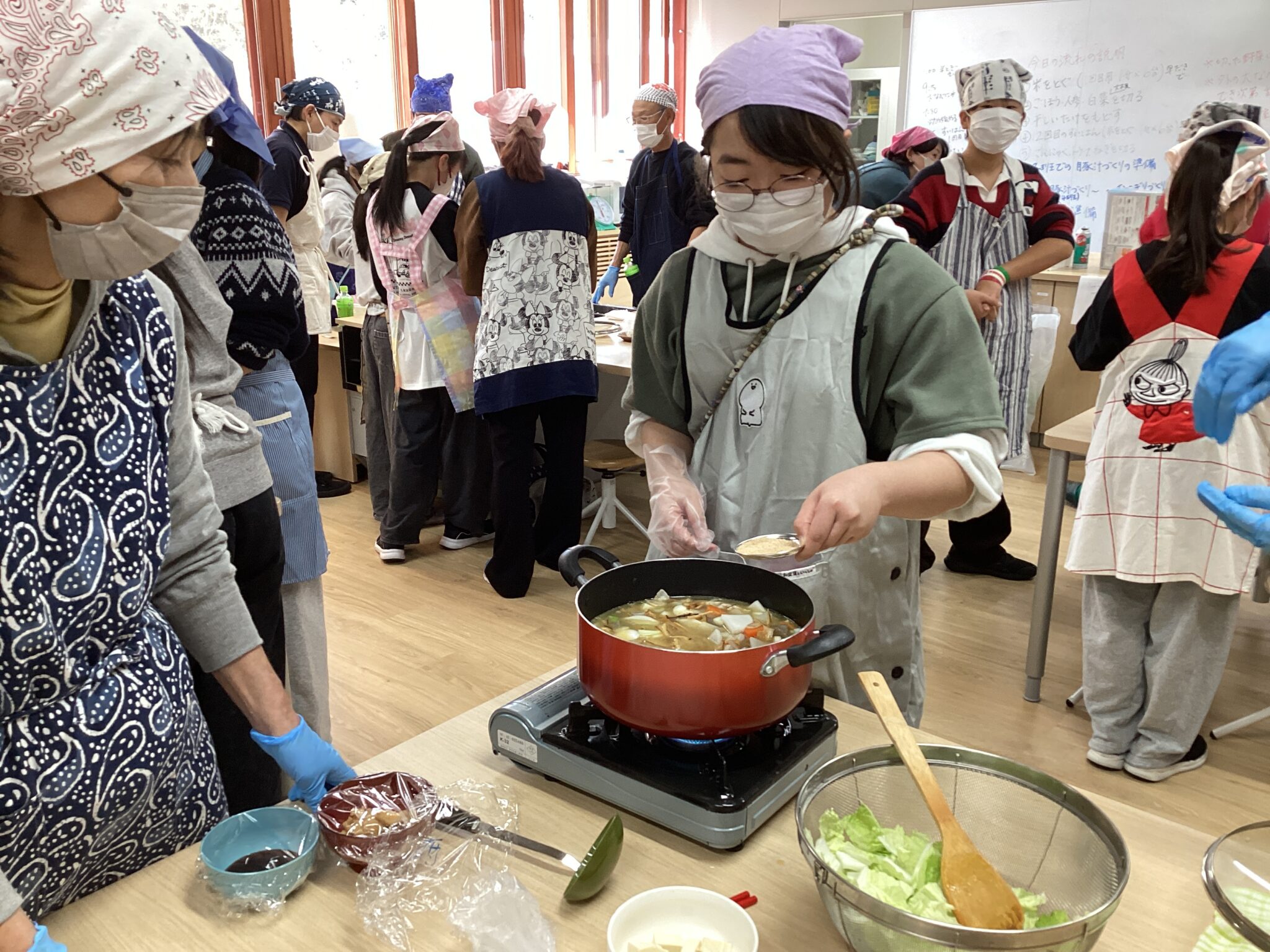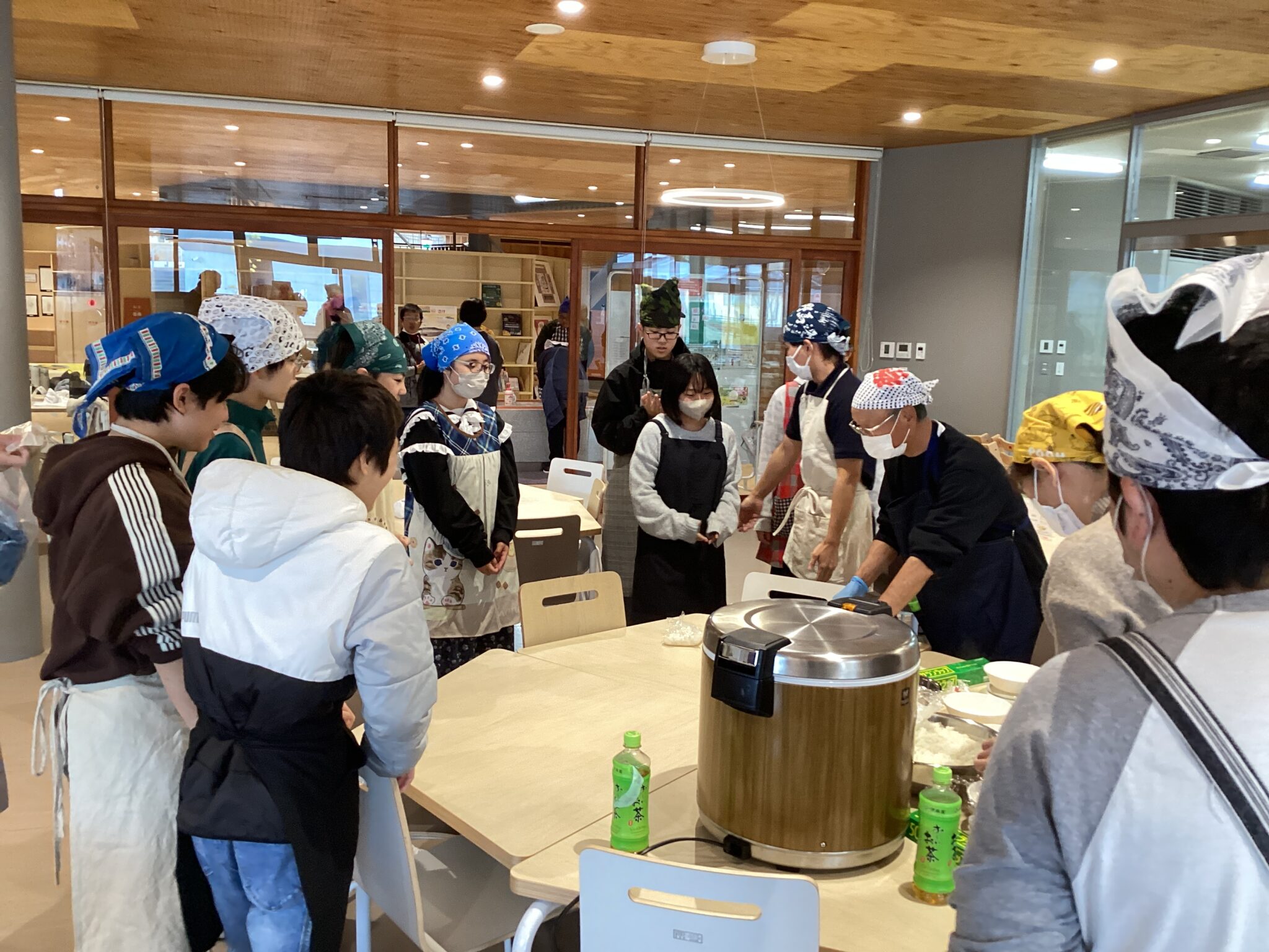 We held an Imoni (potato and vegetable stew) gathering, inviting local residents and parents. While the ingredients for the pork miso soup were ordered from various food companies, we received support from local shops to cook the rice. Many people contributed to the cooking, including community and parent volunteers.