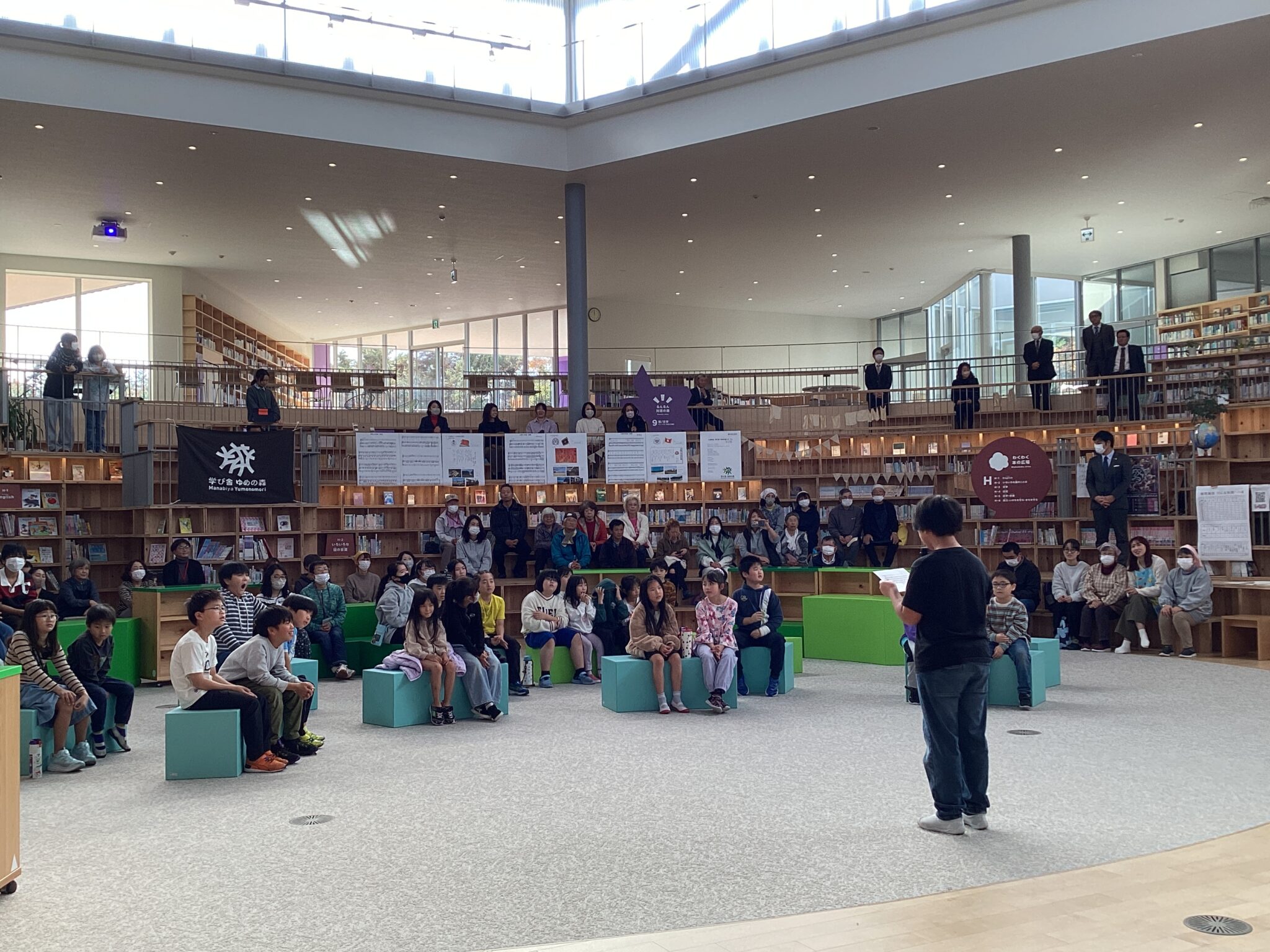“How was the hospitality today? Thank you for coming to the Imonikai. This hospitality was planned by the children, who discussed how to make the local community happy. They suggested, ‘Wouldn’t it be nice to give a presentation?’ or ‘How about singing the Yumenomori school song?’ Among these ideas, a third-grade student proposed, ‘Why don’t we sing the school songs of Ono Elementary and Kumamachi Elementary?’