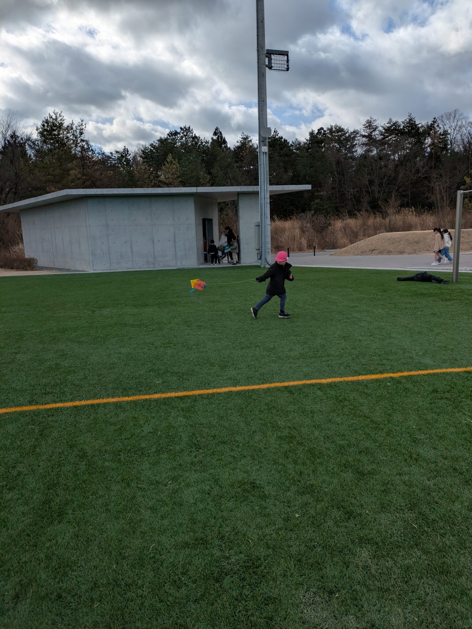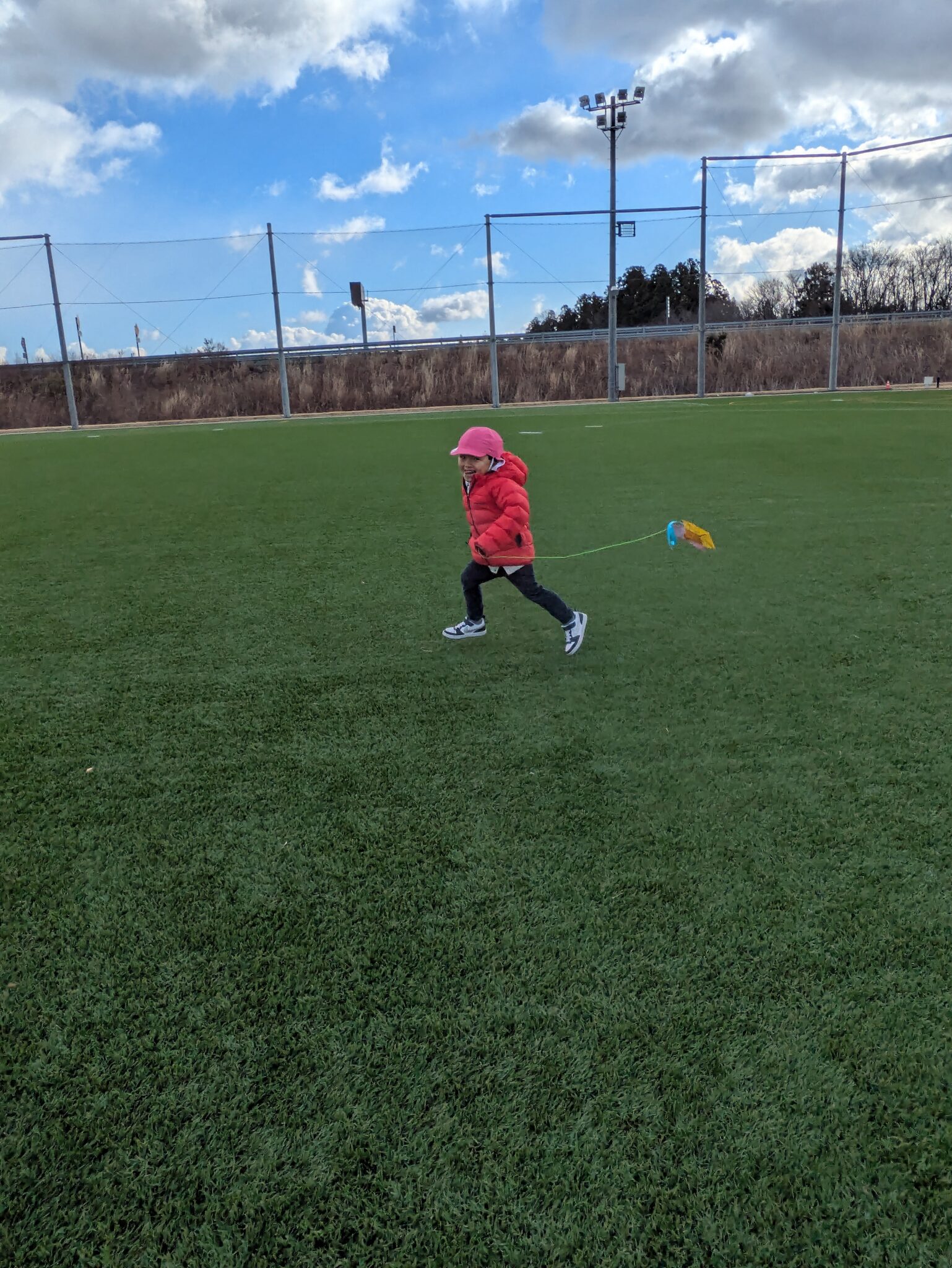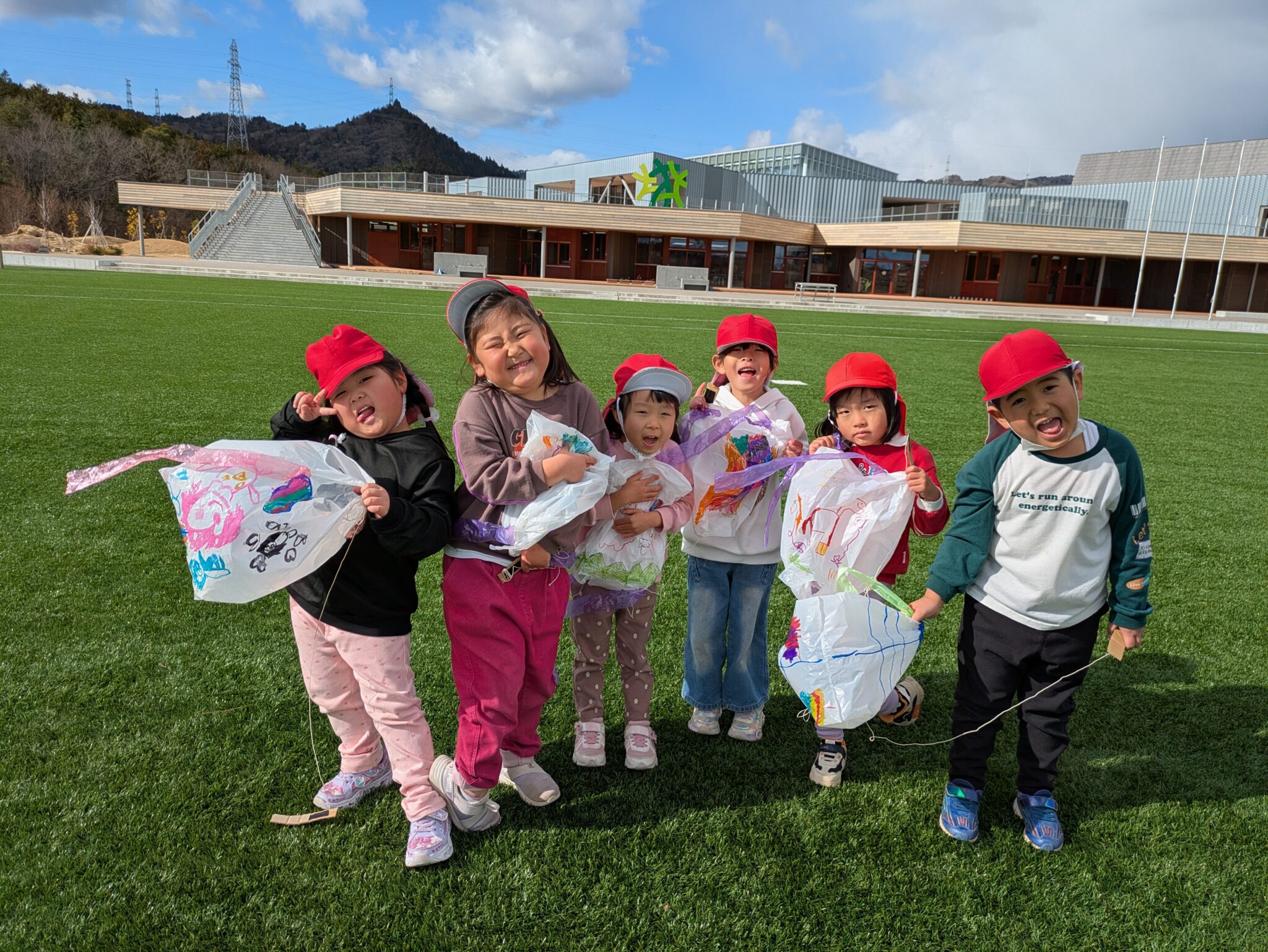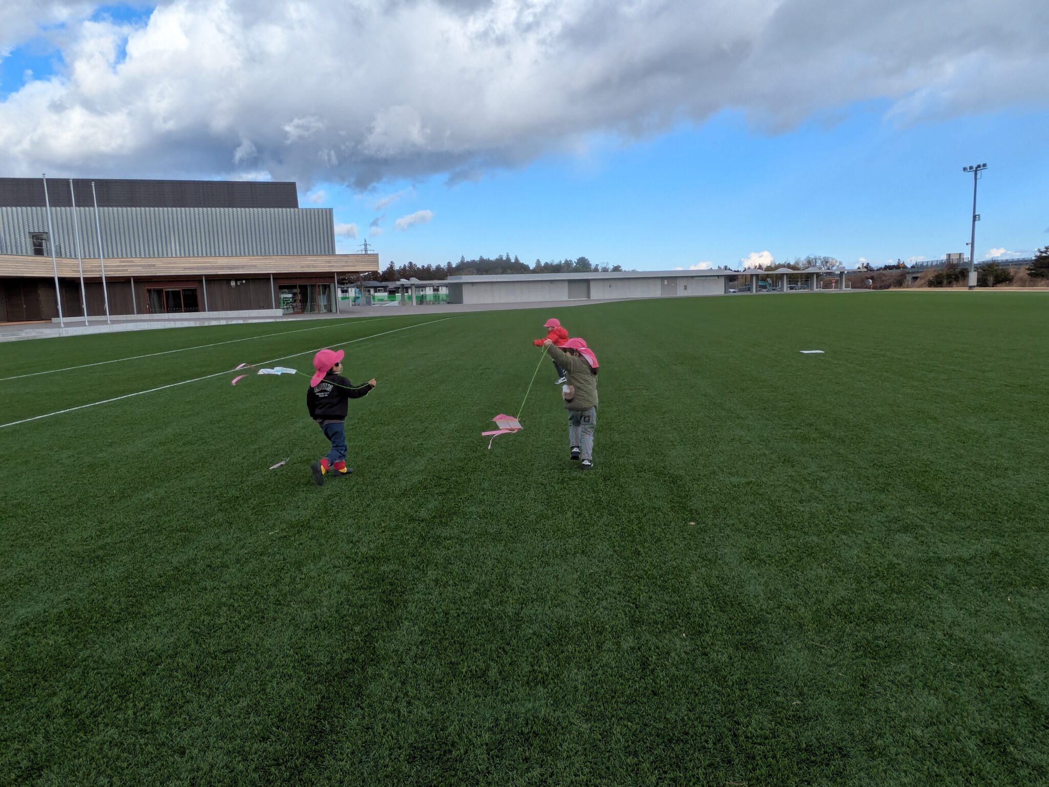 糸を長くすれば絡まるし、風と同じ方向に走れば凧は飛ばない。回数を重ねるごとに飛ばし方が上手になっていました。明日もやろうね!と約束し、寒さに負けず走り回る子どもたちです。