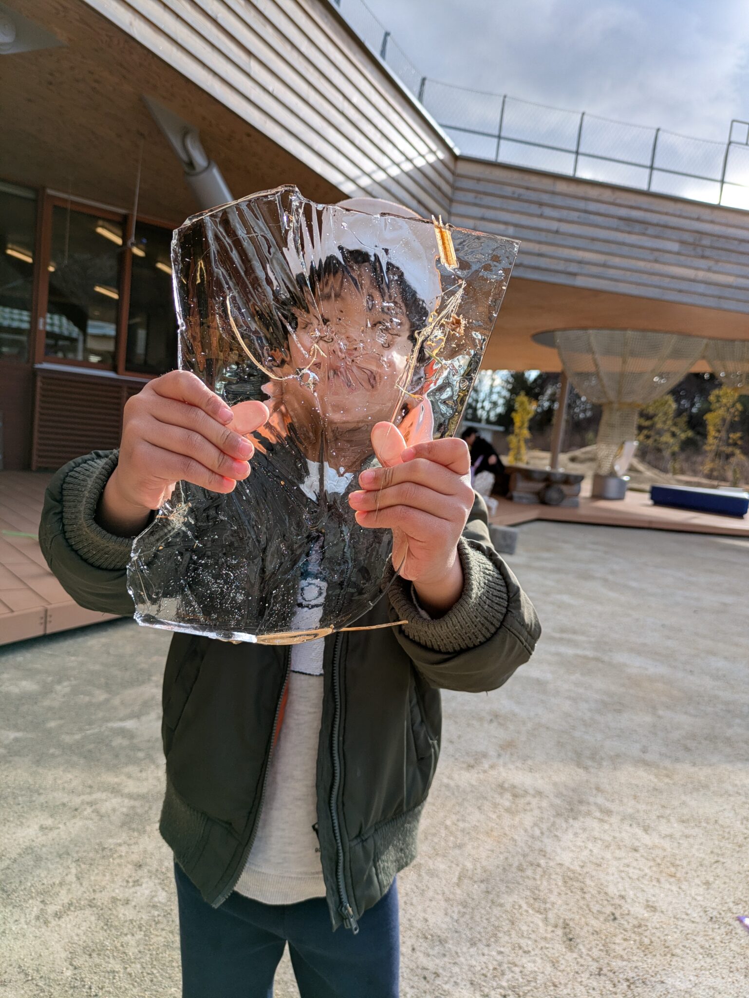 糸を長くすれば絡まるし、風と同じ方向に走れば凧は飛ばない。回数を重ねるごとに飛ばし方が上手になっていました。明日もやろうね!と約束し、寒さに負けず走り回る子どもたちです。