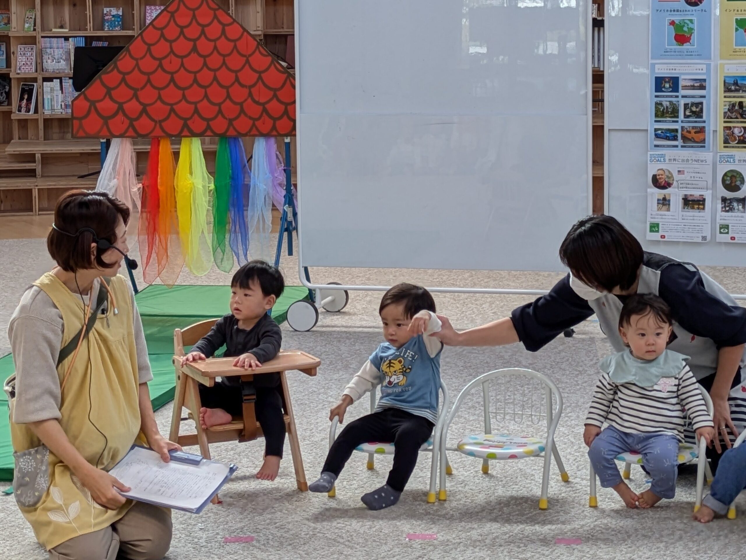「すくすく」(0~2歳児)は普段のこども園生活を見てもらおう!ということで、構成しました。