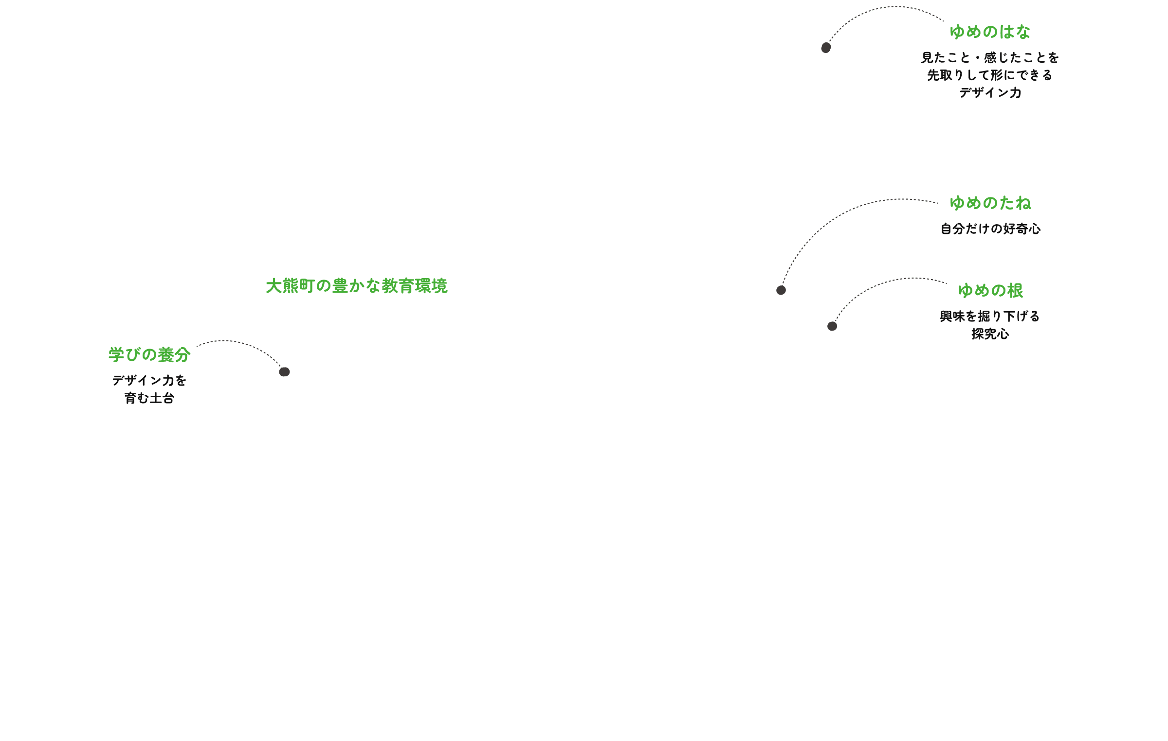 これからの未来を生きる子どもたちには、見たこと・感じたことを先取りして形にできるデザイン力を育み、自分だけのゆめのはなを育ててもらいたい。学び舎 ゆめの森では、一人ひとりに芽生えたゆめのたね(好奇心)を大切に見守り、じっくりと根を張って探究できる時間を大事にしていきたいと考えています。